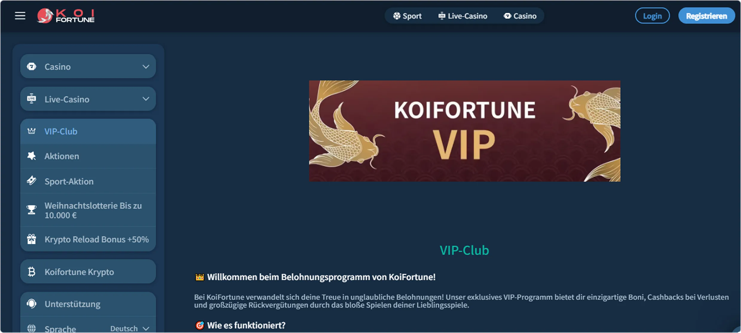KoiFortune Casino bietet einen klaren japanischen Koi-Stil mit einer großen Auswahl an Spielen,